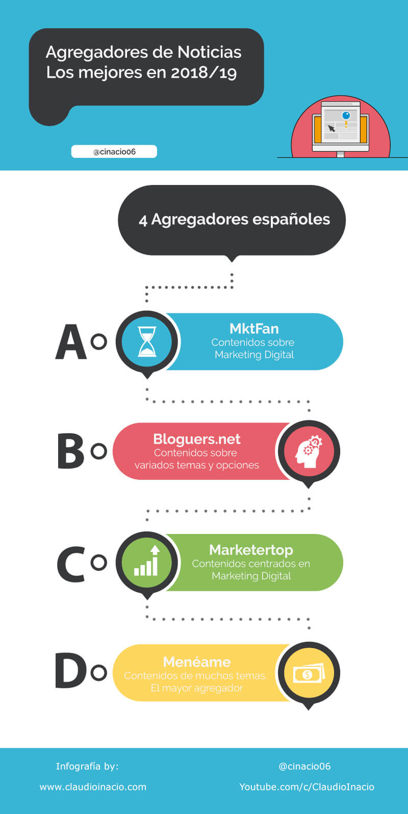 Una infografía con 4 agregadores de noticias españoles. Vía Claudio Inacio