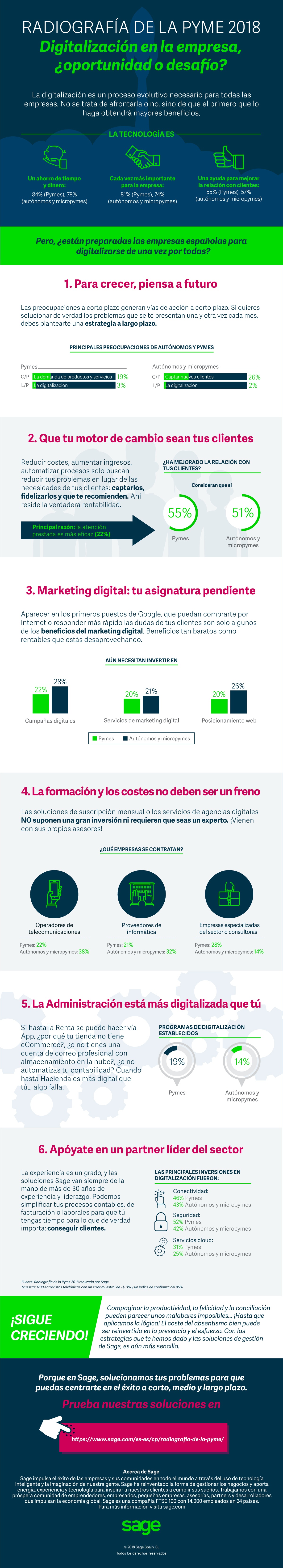 Una infografía sobre la digitalización de la pyme en España. Vía Sage