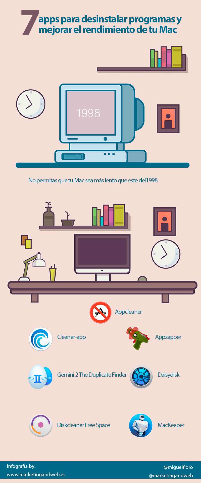 Una infografía con 7 apps para desinstalar programas y mejorar el rendimiento de tu Mac. Vía Marketing and Web
