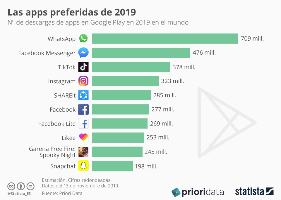 Una infografía sobre las APPs para Android más descargadas en 2019. Vía Statista