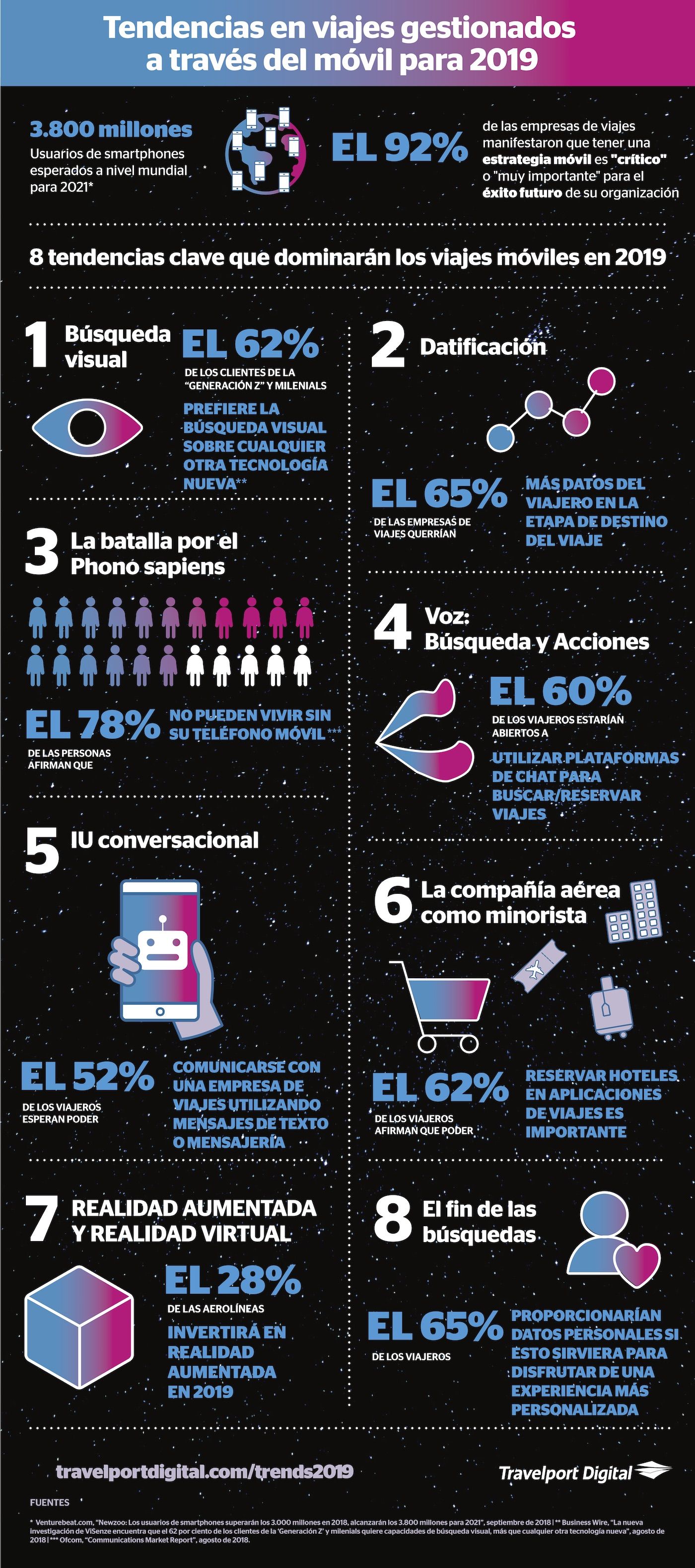 Una infografía sobre Tendencias en viajes gestionados por el móvil. Vía TravelPort Digital