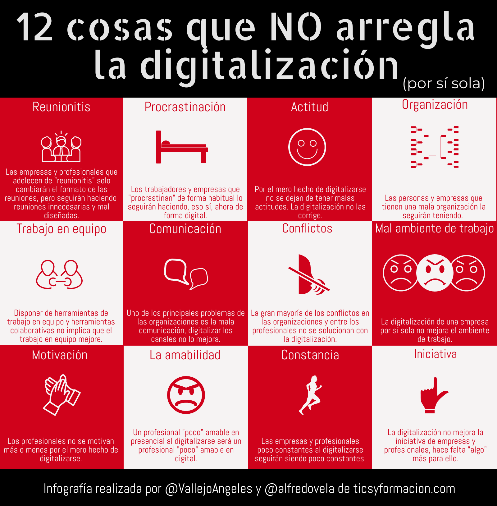 The post 12 cosas que NO arregla la digitalización (por sí sola) #infografia #TransformaciónDigital appeared first on TICs y Formación.