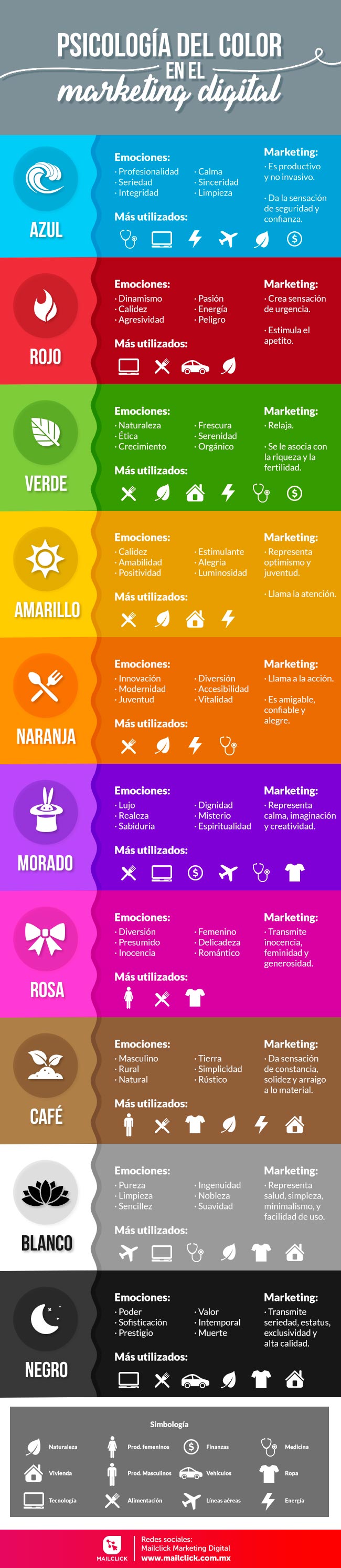 Una infografía sobre la Psicología del color en el marketing digital. Vía Mailclick